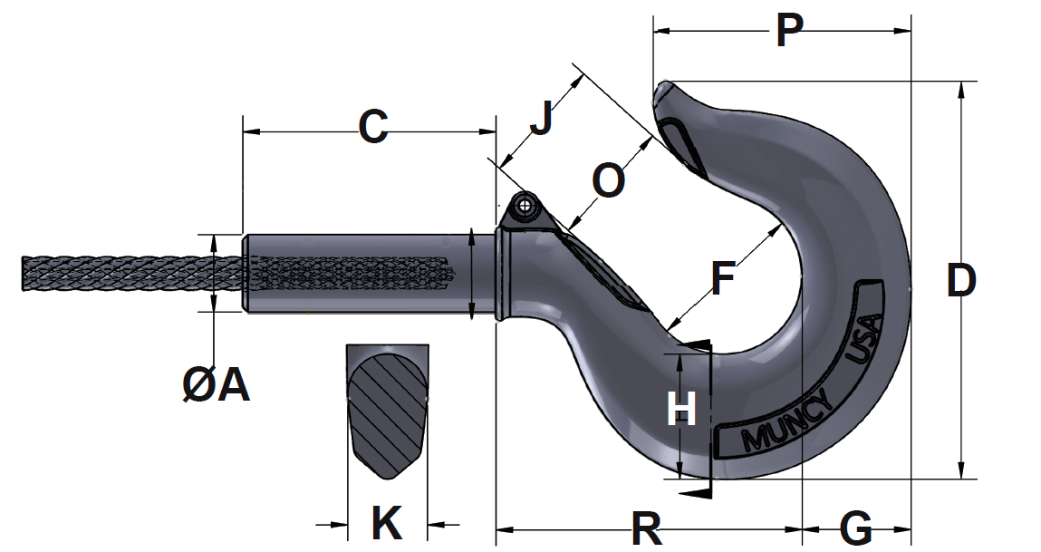 | SH-8 SH-8/Asset/shank-hook.png | Wire Rope Dia (in) N/A 1/4 | Latch Hole Dia. N/A 0.180 " | Weight Lbs. Each N/A 0.8 lbs |